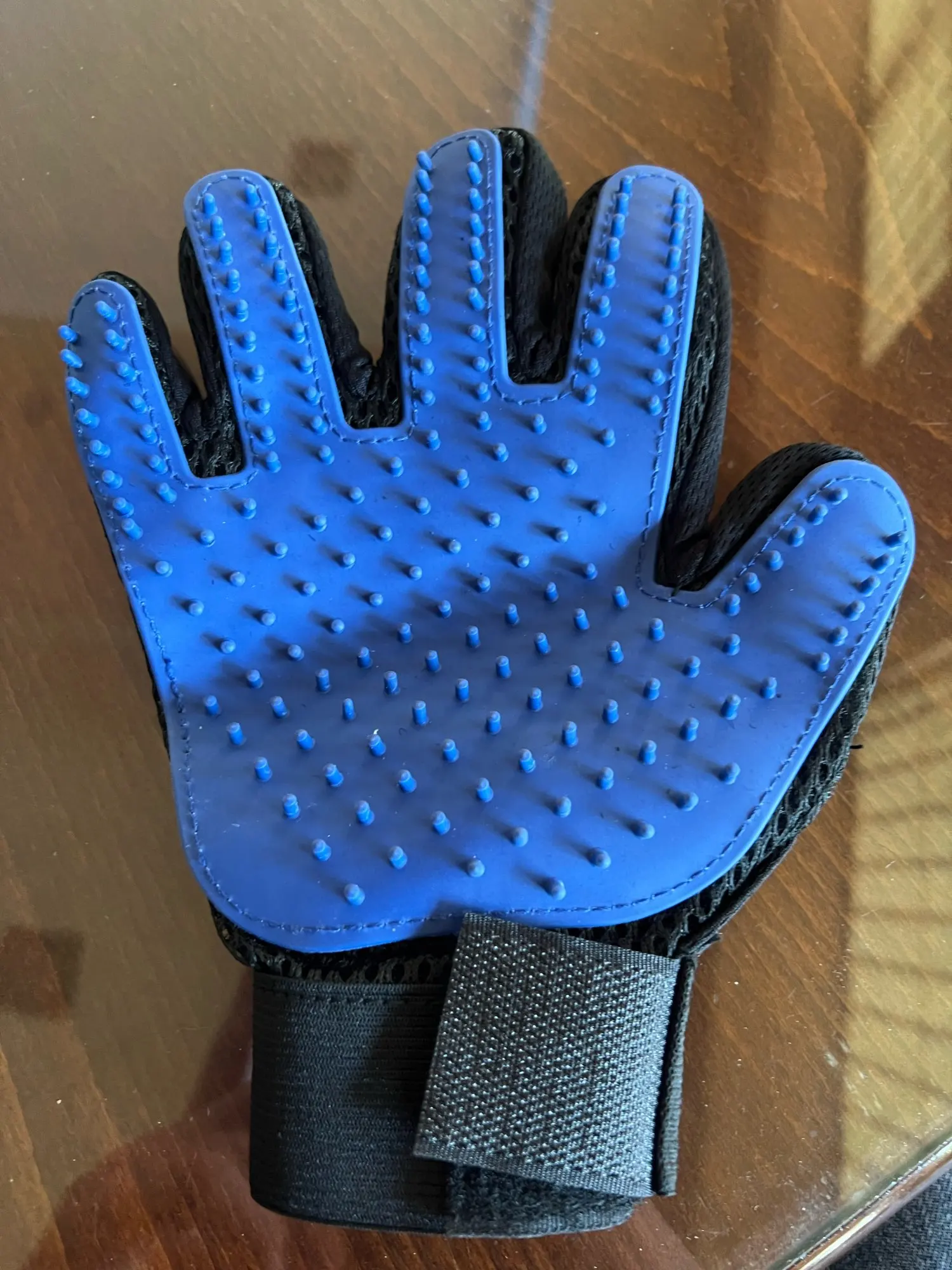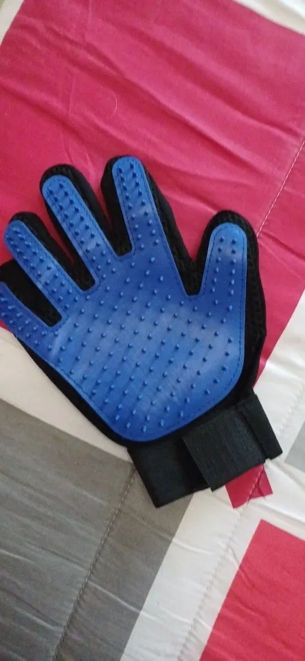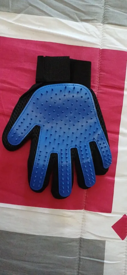 The Pet Grooming Brush Glove is a great grooming tool for your cat or dog. The glove is made of soft, flexible silicone bristles that gently remove loose hair, dirt, and dander while massaging your pet's coat.